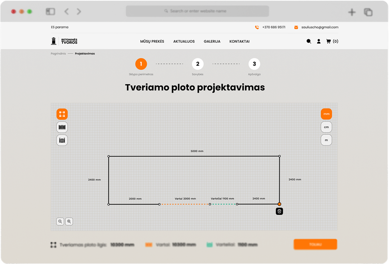 Naujiena mūsų e. parduotuvėje - galite susimodeliuoti pagal savo sklypo išmatavimus perimetrą, ir mes už Jus suskaičiuosime kiek reikia medžiagų šiam perimetrui.